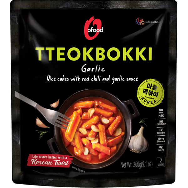 O'FOOD Topokki tteokbokki z sosem czosnek chilli 260g Gluten Free Instant