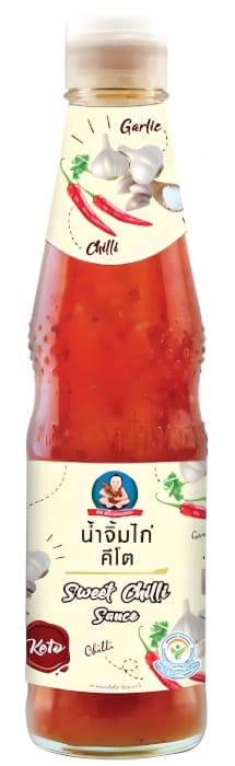 Woda, ocet, chili 14%, czosnek, modyfikowana skrobia z tapioki, sól, cukier, wzmacniacz smaku: glutaminian sodu E621.