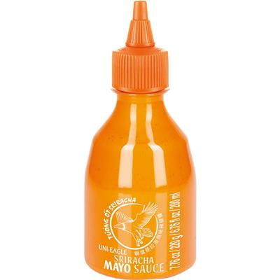 woda, olej słonecznikowy (18%), pasta sriracha (10%) (papryka, czosnek, przecier pomidorowy, woda, chili, papryka chili scotch bonnet, ocet spirytusowy, sól, cukier, cebula), cukier, skrobia modyfikowana, ocet spirytusowy, żółtko jaja, sól, chili mielone, czosnek mielony, mączka gorczycy, stabilizator: guma ksantanowa, regulator kwasowości: kwas jabłkowy, barwnik: ekstrakt z papryki, przeciwutleniacz: sól wapniowo-disodowa EDTA, naturalny aromat.